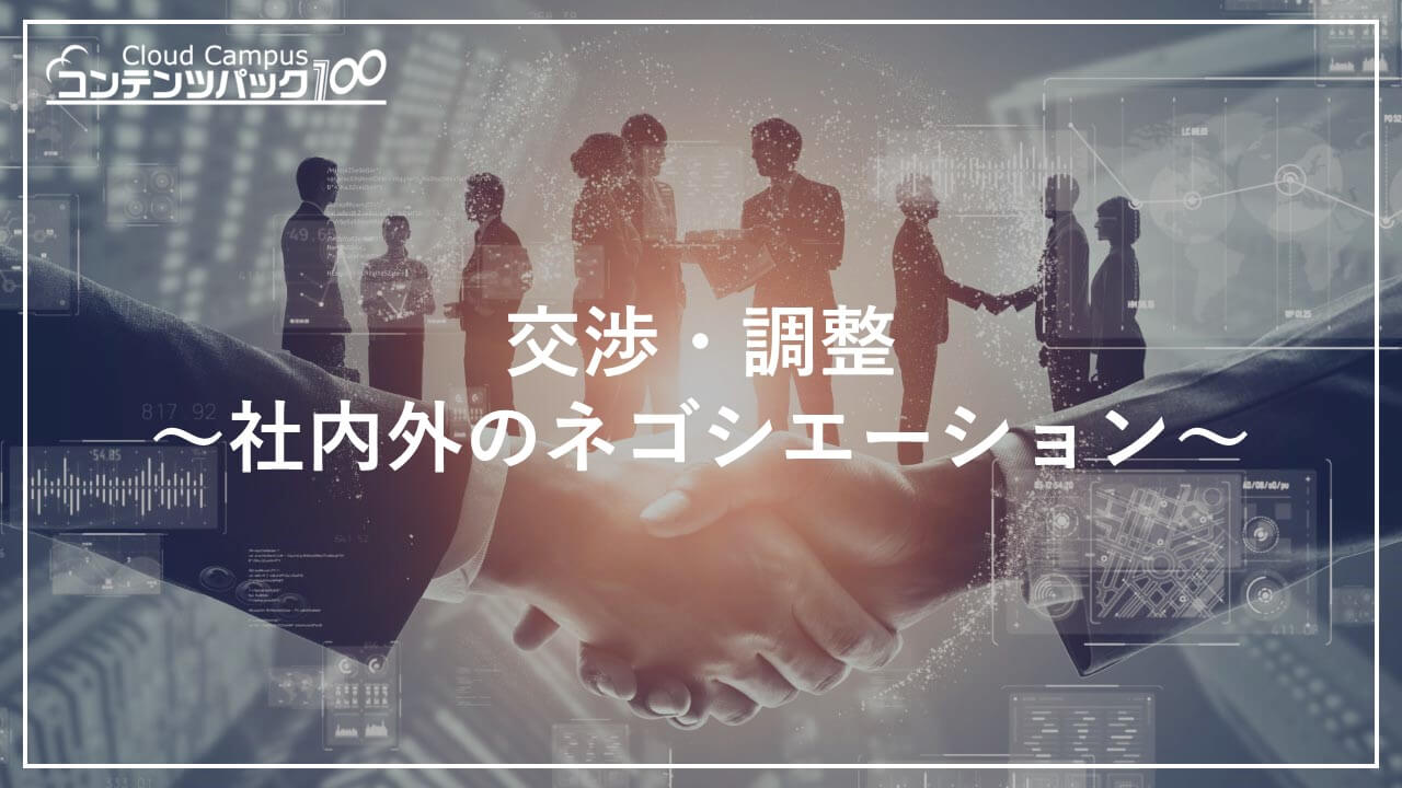 Cloud Campusコンテンツパック100では、「交渉・調整力強化」でビジネスを効率的に進めるためのWin-Winを意識した交渉や、調整ができるようになるポイントを学べます。